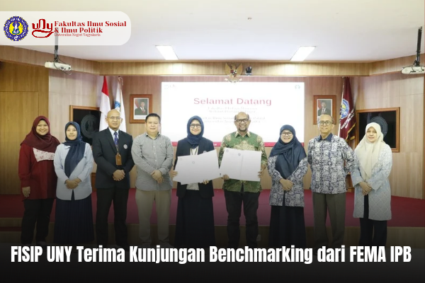 Fakultas Ilmu Sosial dan Ilmu Politik Universitas Negeri Yogyakarta (FISIP UNY) menerima kunjungan dari Fakultas Ekologi Manusia Institut Pertanian Bogor (FEMA IPB) pada hari Rabu (15/10/2025), pukul 11.00 WIB di Ruang Ki Hajar Dewantara. Kunjungan ini dilaksanakan dalam rangka kegiatan benchmarking yang difokuskan pada penyelenggaraan Program Studi Sosiologi dan Geografi Lingkungan di IPB.